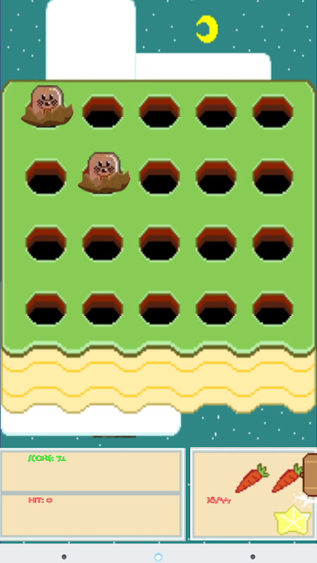 Don't hit moles this have a carrot because you will be subtract carrot in my pocket. You have 3 carrot and if my pocket have no carrot , you are lose.