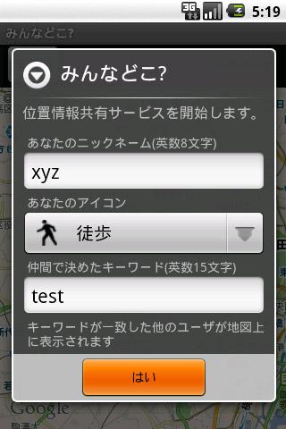 しばらくすると、同じキーワードを指定した友達が地図上にアイコン表示されます。