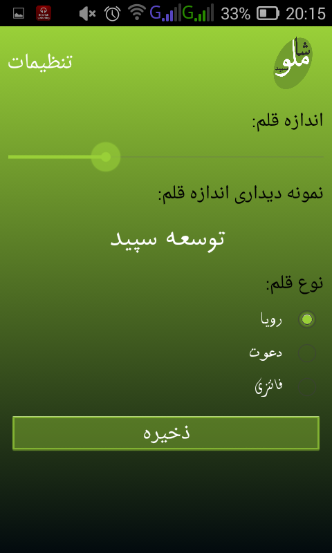 تغییر اندازه خط : قابلیت انتخاب اندازه های بسیار بسیار بزرگ و بسیار بسیار کوچک جهت نمایش اشعار را برای شما فراهم می کند. این ویژگی به افرادی که دارای ضعف بینایی دارند کمک می کند به راحتی بتواند با برنامه کار کنند .