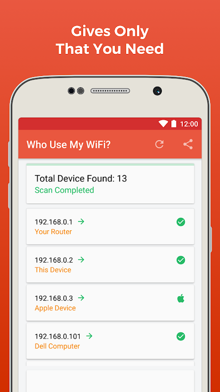 Many times you don't know why your internet speed is so slow. There might be one reason that someone is stealing your wifi network speed without your permission. Using this app, in seconds you know how many and which device is connected to your router with IP, MAC ID and vendor listing.
