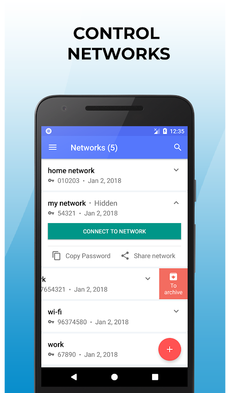 De applicatie werkt als wachtwoordbeheerder voor draadloze netwerken, met extra functies. De applicatie is gratis, werkt zonder rootrechten.