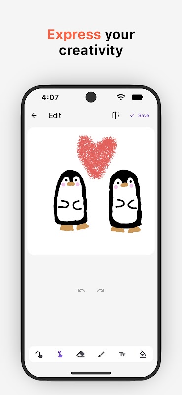 Beperk jezelf niet tot foto's! Laat uw creativiteit de vrije loop met onze ingebouwde tekenhulpmiddelen. Maak gepersonaliseerde tekeningen en deel ze met uw dierbaren, waardoor uw widgets een vleugje artistieke flair krijgen.