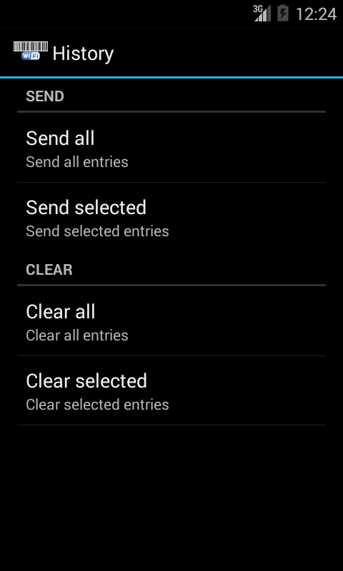 Later kunt u de gescande barcodes met behulp van de menu-optie History sturen.
