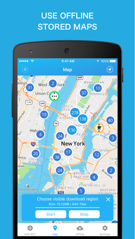 ✓ Download WiFi-hotspotkaart voor offline gebruik tijdens het reizen (geen internetverbinding nodig)