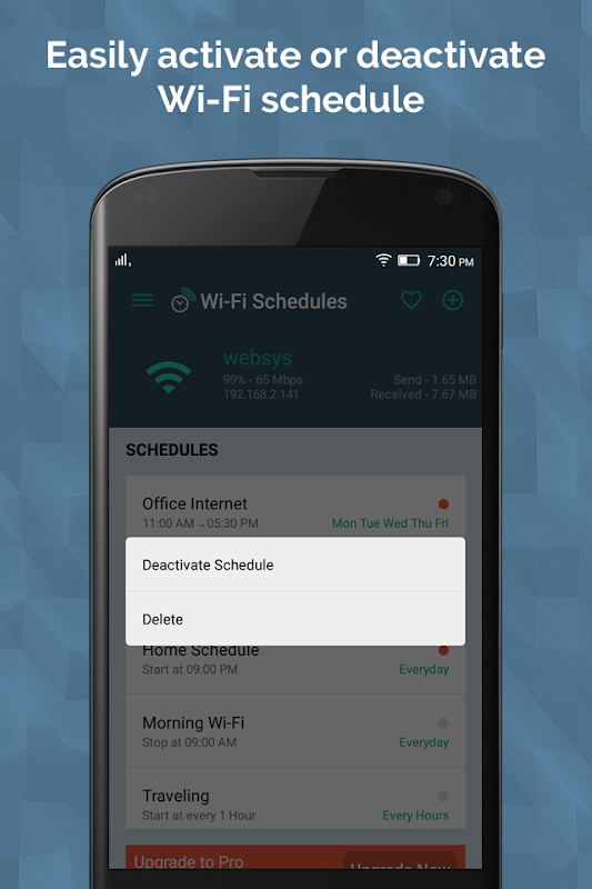 * Auto scheduling your devices’ wifi *