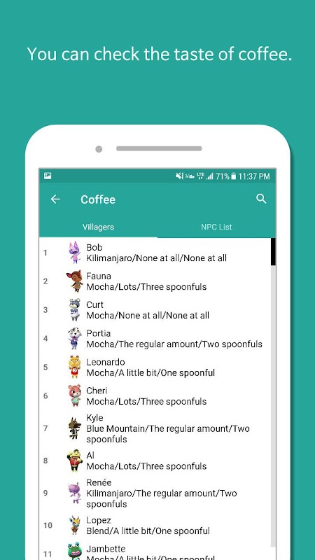 - Taste of koffie (U kunt de smaak van de bewoners en de NPC's koffie te controleren)