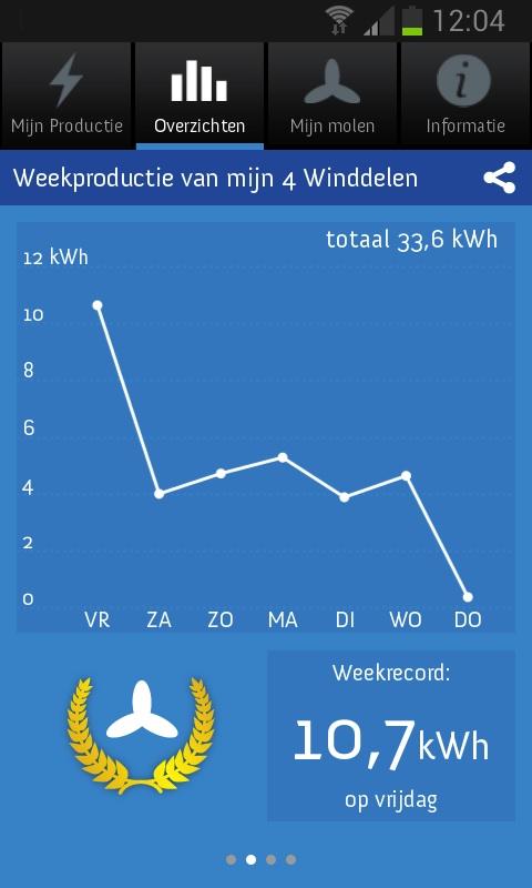Met de Windcentrale app is je windmolen altijd en overal dichtbij! Met de app zie je "live" de productie van jouw windmolen en Winddelen. In een oogopslag zie je hoeveel stroom je de afgelopen dag, week, maand en jaar hebt geproduceerd. Heb je nog geen Winddelen? Kijk dan gratis mee hoe de molens draaien!