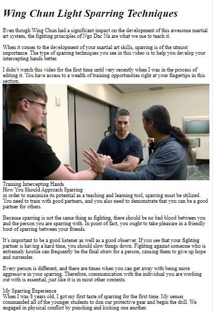 Blokkeren en pareren: leer verschillende blokkeer- en pareertechnieken om inkomende aanvallen af te weren. Technieken omvatten de Tan Sau (handpalm omhoog), Bong Sau (vleugelarm) en Fook Sau (controlerende hand).
