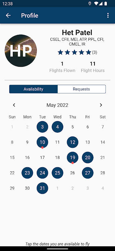 3. Tik op je profiel en bewerk de vluchten waarop je kunt vliegen. U kunt de tijden wijzigen voor elke dag dat u beschikbaar bent.