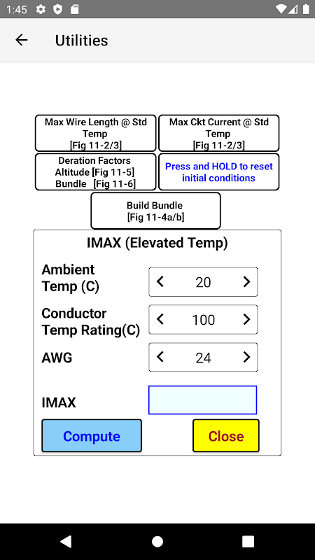Deze app helpt de vliegtuigmonteur (A&P) bij het bepalen van de juiste American Wire Gauge (AWG)-draadmaat voor bepaalde omstandigheden, volgens de procedures beschreven in FAA-publicatie AC 43-13 1B (Acceptable Methods, Techniques, and Practices - Aircraft Inspection and Repair ), Hoofdstuk 11.