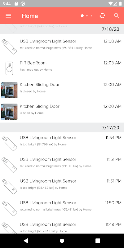 - Nadat in het gebeurtenisscherm de bewegingsgebeurtenissen zijn geladen, worden ze op het trendscherm gelegd, vergelijkbaar met de iOS-versie van deze app, om de reden achter veranderingen in temperatuur / vochtigheid (zoals deur openen / sluiten) mogelijk te maken.