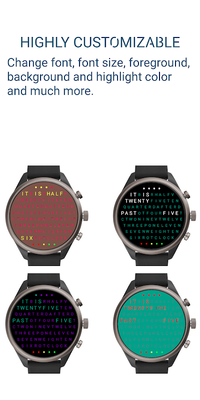 Toon de tijd in woorden. De Word Clock Watch Face overbrugt de kloof tussen modern design en klassiek horloge.
