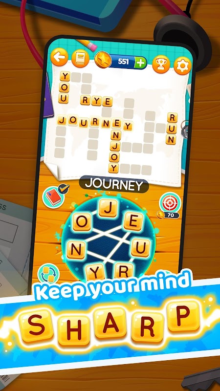 Het is gemakkelijk te leren en leuk om te beheersen: vind alle woorden die je kunt om de kruiswoordpuzzel in te vullen. Bij elk nieuw hoofdstuk van het spel zul je nieuwe woorden vinden en naar nieuwe steden reizen!