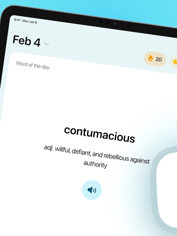 Elk woord van de dag is zorgvuldig geselecteerd om je te begeleiden bij je dagelijkse woordverwerving. Bestudeer alledaagse woorden met onze woordenschatbouwer en speel interactieve woordenschatspelletjes. Versterk je begrip van elke definitie en boek gestaag vooruitgang terwijl je elke dag een woord leert. Bewaar je favorieten in je woordenlijstwoordenboek en gebruik woordboosteroefeningen om je vaardigheden te verbeteren. Houd je aan een 1-daags 1-woordschema, beheers elk moeilijk woord en verbeter je vaardigheden consequent terwijl je je Engelse woordenschat verbetert.