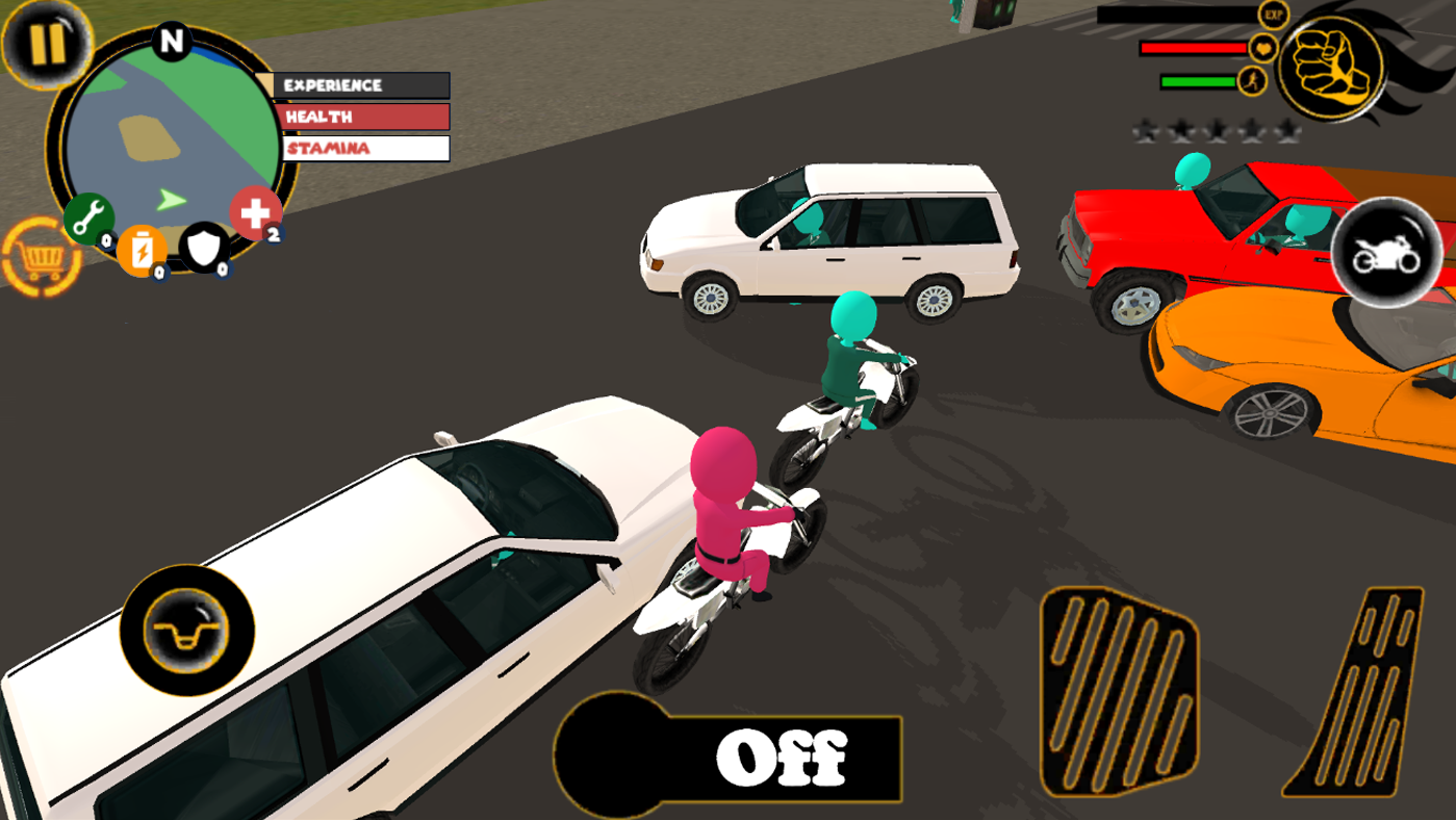 The Worker Rope Hero stickman Gangstar Crime city simulator in third person Squid Game view (and FPS mode), where you drive an amazing cars or a motorbike. You play is a hero / legend and whole city fears you. Become a chief on the streets of anti criminality in town.