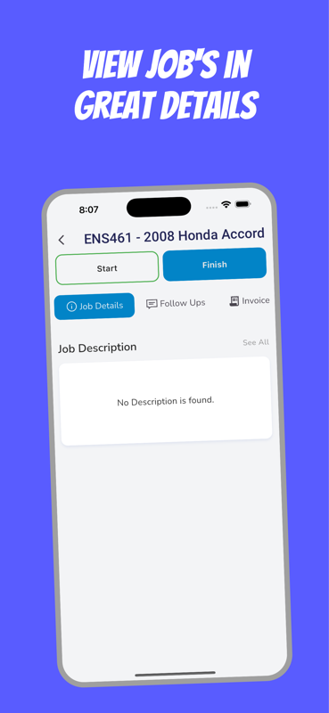 Realtime tijdregistratie: monteurs kunnen in- en uitklokken door het kenteken van het voertuig te scannen met behulp van een mobiele app, waardoor een nauwkeurige tracking van de werkzaamheden wordt gegarandeerd zonder dat er computers nodig zijn.