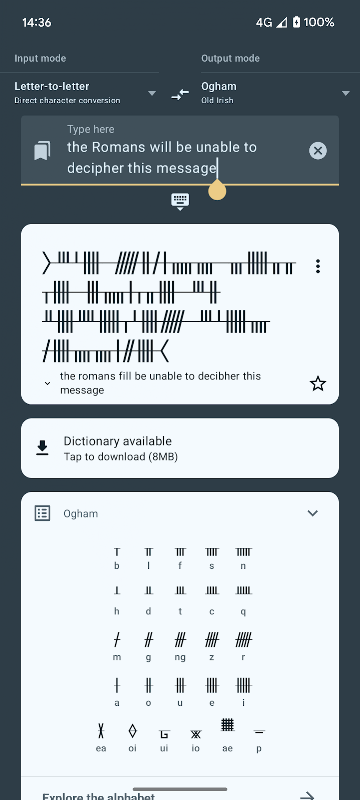 Deze app maakt runen van Latijnse karakters, gebaseerd op een fonetische vertaling.
