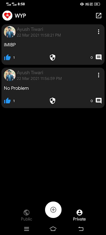 Schrijf uw probleem in app. Doe uw probleem in het openbare gedeelte of het privégedeelte.