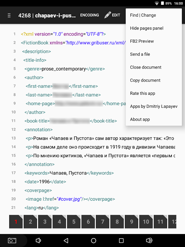 De applicatie is ontworpen voor het bekijken en bewerken van .xml, .html en andere tekstbestanden. De mogelijkheid van het bewerken geïmplementeerd op twee manieren: per rij en per pagina.
