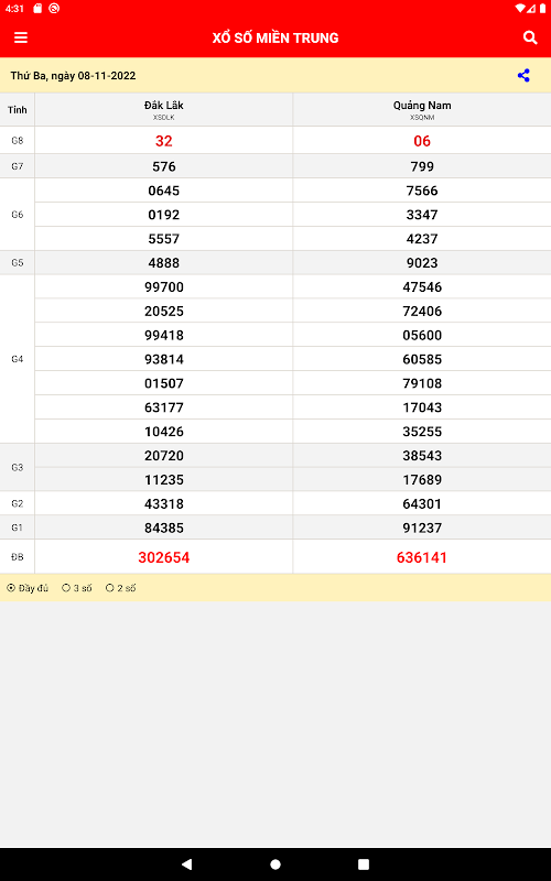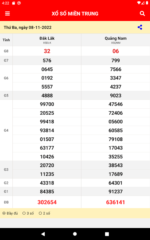 - Zaterdag: Da Nang (xsdn), Quang Ngai (xsqn), Dak Nong (xsdn)