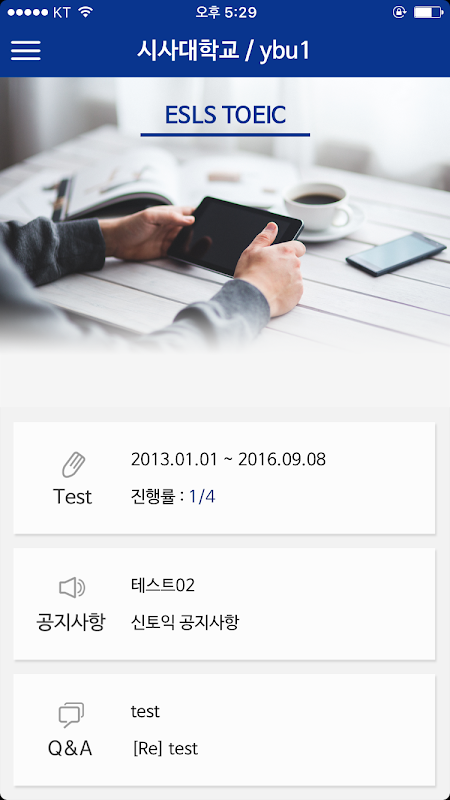TOEIC® ESLs online cursussen (cursussen met verschillende namen daehakbyeol) "TOEIC® Mock & video lezingen" voor diensten voor studenten.