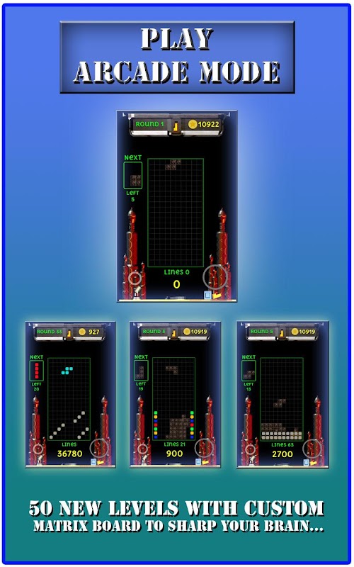 ARCADE MODE - Voor meer plezier, probeer de aangepaste "ARCADE MODE" van 50 levels, in de stijl van een old school game.