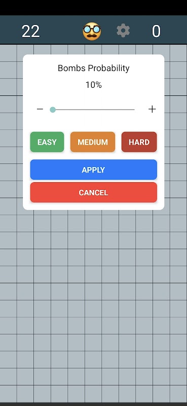 Je kunt de waarschijnlijkheid van mijnen aanpassen tussen 10% en 30%, en de uitdaging naar wens aanpassen.