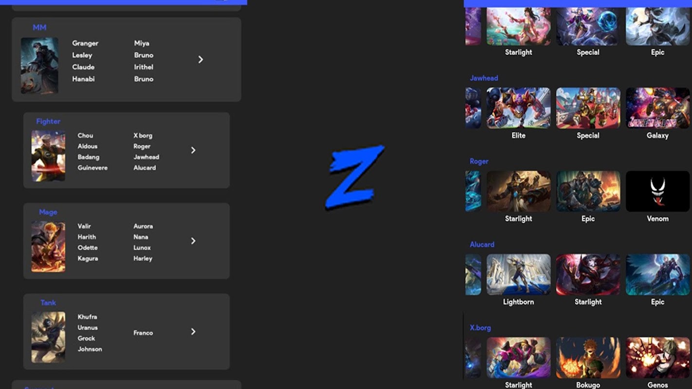 Zolaxis patcher Injector Apk Mobile Guide is an app made to let your read all the legend heroes skins and abilities including spells skills passive attacks and special powers and each heroes skins visual appearance of the abilities including all the kinds of heroes.