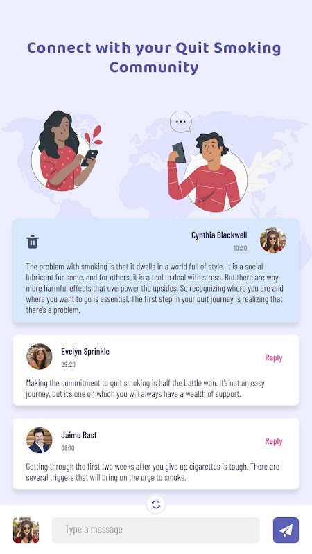 - Connect & chat with the stop smoking community.