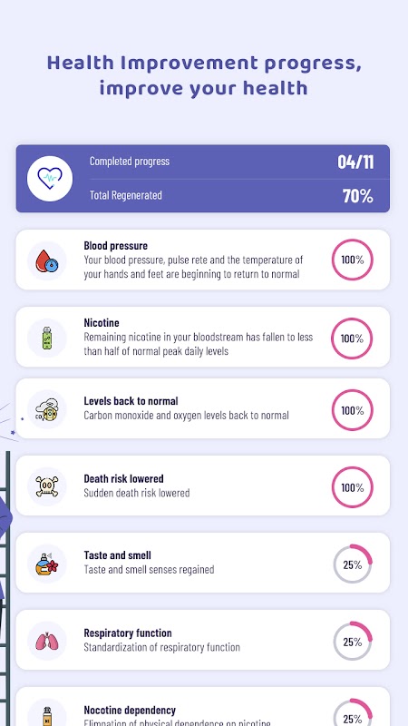 This app will tell you how many cigarettes smoke per day, how much time you spent without smoking, how much money you have saved and the amount of life saved by not smoking.