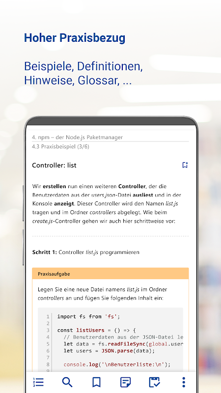 To get started, you'll learn the necessary tools and set up your development environment. Step by step, you'll discover the basics of JavaScript, including modern language features that make the language particularly flexible and efficient. You'll then learn how server-side applications are structured, how the underlying event loop model works, and how to work with modules and asynchronous processes. These topics are among the core concepts of the platform. Using practical examples, you'll develop your own web servers, initially using the built-in functions, and later also using a framework and a template engine for dynamic content.