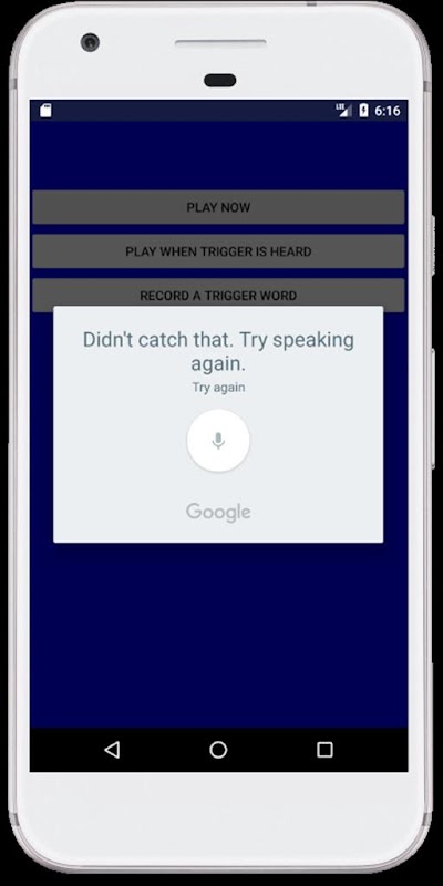Speech enabled noise maker. Select your own trigger words or just have it play.