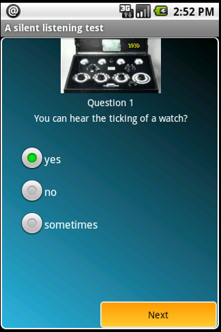 Take a hearing test by Hahlbrock ( German physicians in the field of ear, nose and throat medicine - Freiburg speech test). Our professional Android app " Hearing Test EN " contains no banner ads and does not require any permissions. Road noise, stress , visits to nightclubs , to loud listening with headphones or noise at work cause hearing loss. Therefore, a hearing test at specific time intervals should belong to health prevention.