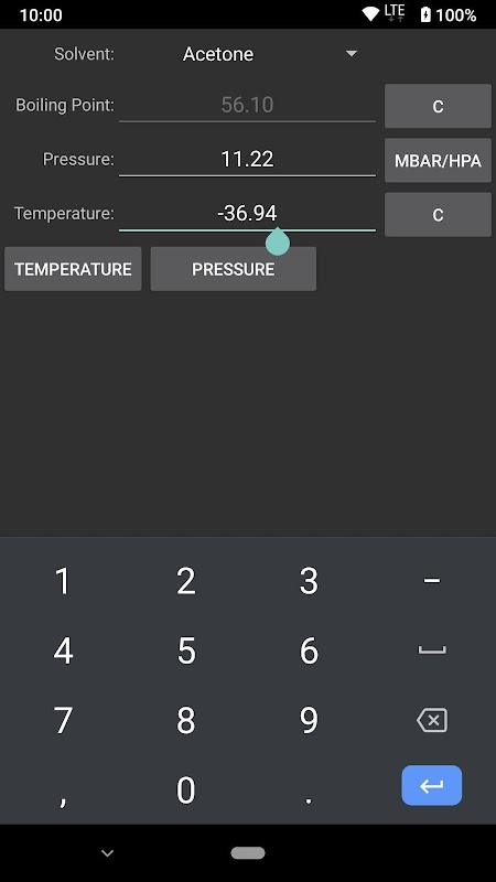 2) Enter two of the three fields (boiling point, pressure, temperature)