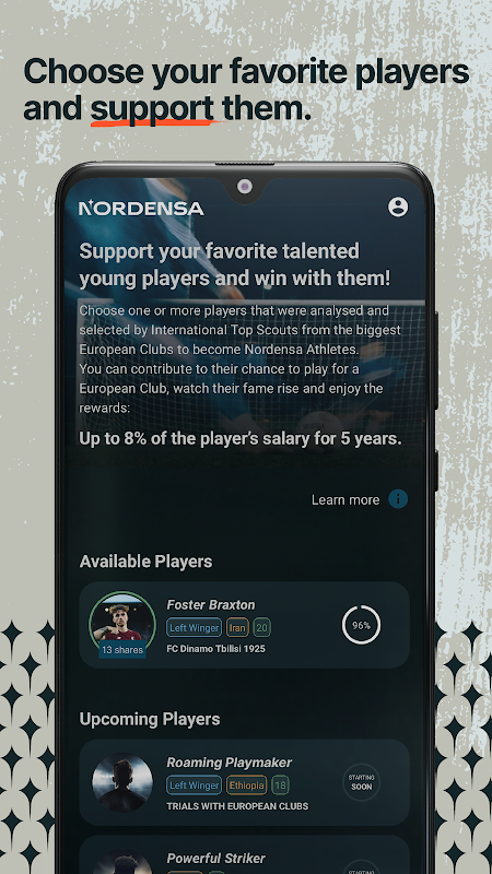 Once you sign up and sign in, you’ll be able to see all available players. We call them Nordensa Athletes.