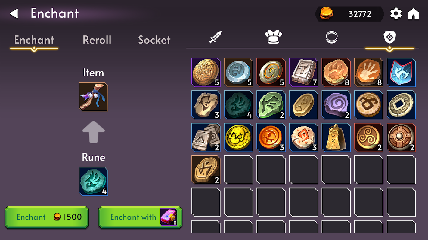 * Enchant items with Runes and socket them with Gems. Reroll item properties.