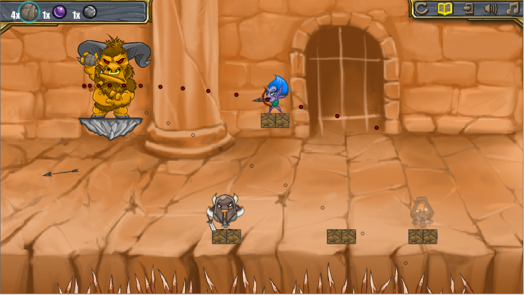 Protect your treasure from warriors, archers, priests, and other heroes. Throw wood, rubber, and steel balls to make the heroes touch spikes.