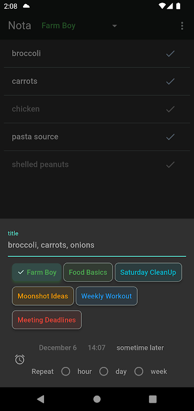 Besides checked items do not disappear by default. So you do not have to recreate them each time.