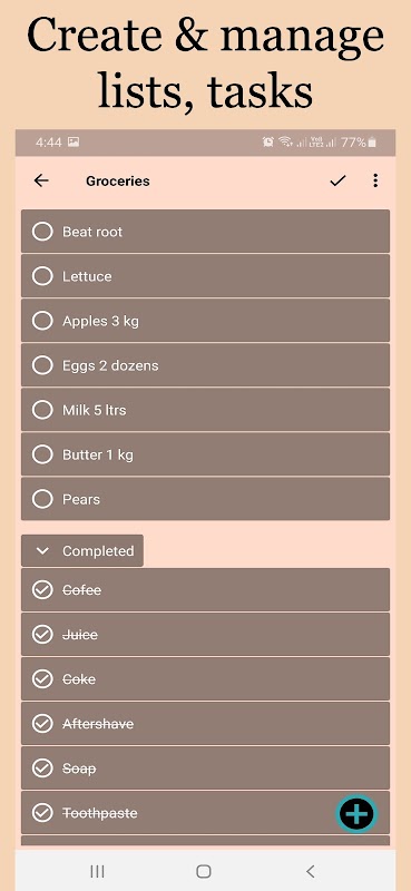 ☑️ Task Lists : Create to do list or checklist, shopping list for groceries or daily work note list. Rearrange items with drag and drop and mark tasks when complete. Add subtasks for more detailed task description.
