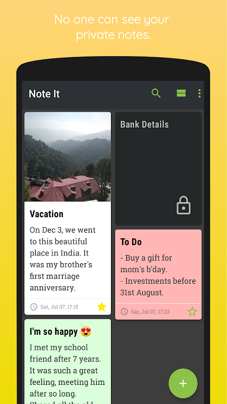 * Note It lets you lock 🔒 your personal note which requires your Phone Lock to unlock