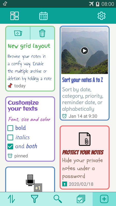 • filter your notes by category, tags and media type