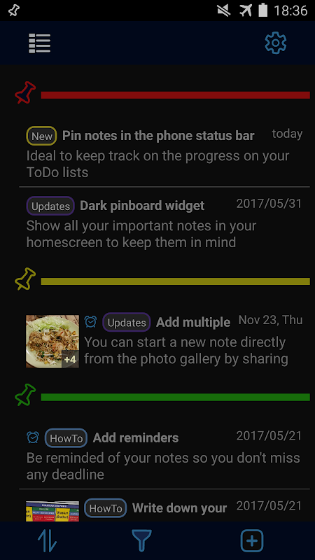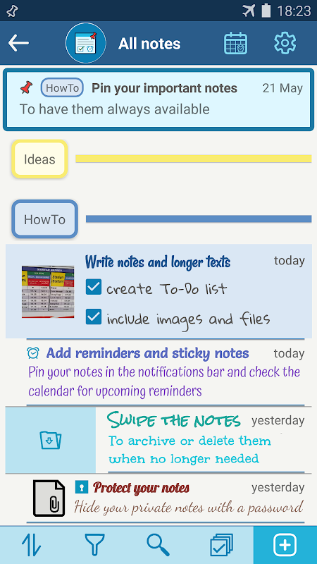 • sort your notes by priority, category, date and time, alphabetically or by reminder date