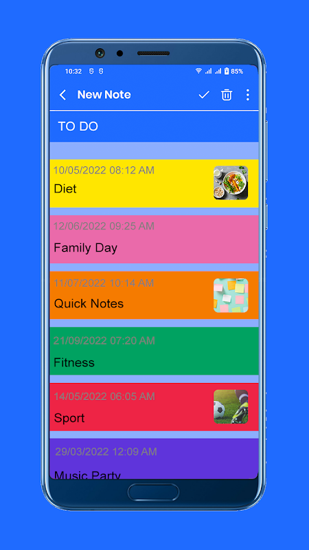 Create your notes, select from backgrounds colors, apply bold, italic or underline option.