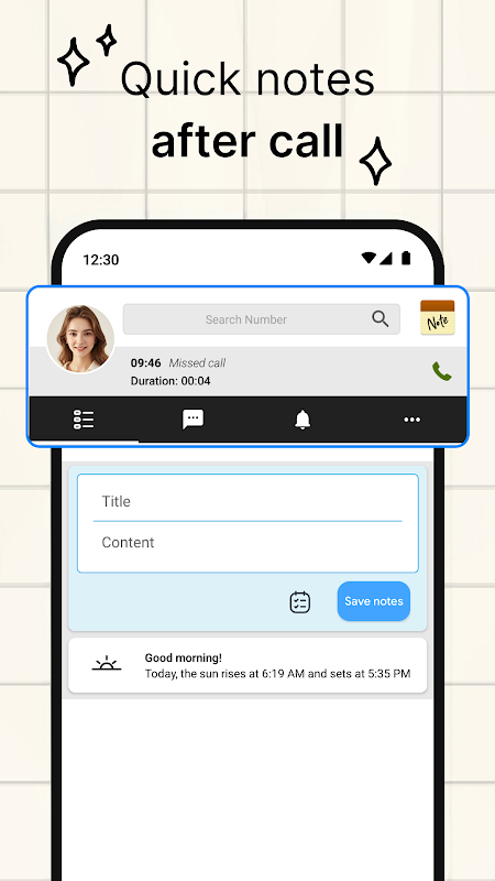 Idea Notes: Structured Notepad shows an aftercall enabling you to identify incoming calls as they happen so you can manage daily tasks, capture creative ideas, save your meeting minutes immediately after the incoming call. This enables users to seamlessly capture and save their ideas and tasks just after calls.