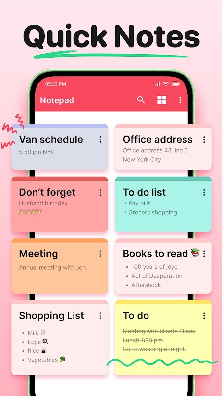 Notebook App is an easy note app that supports color notes. Take notes with different note colors or awesome note themes. Notepad writer customizes notebooks with different themes. Choose your themes in this free easy note taking apps and make your note app more organized!