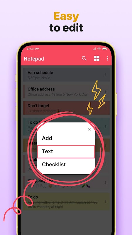 Notebook App - Easy Notepad is a simple writing notepad app. Note pad gives you a quick and simple notepad editing experience when you write different kind of notes, e-mails, messages and shopping lists. Note Pad have note taking formats, lined paper styled text option and checklist option.