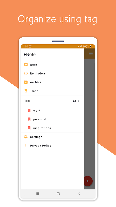 Choose color for one note and list. Manage notes by color. Helps you to work scientifically and easily.