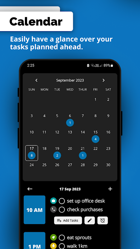 Easily plan tasks for the day, week or even for the month! With calendar integrated day planner, easily view and track your tasks.