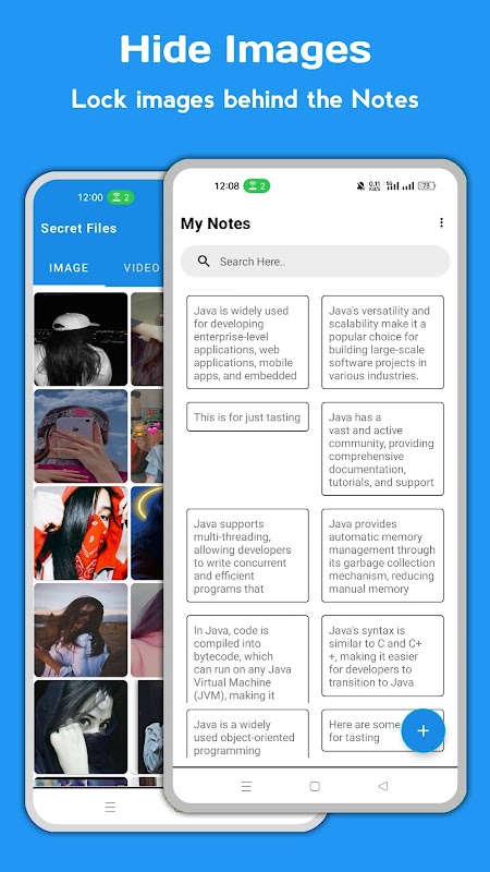Notes Vault (Secret Photo locker, Video Locker, Audio Locker and all other Media Files Locker ) is great privacy protection app to easily hide photos, hide videos, hide audio files, hide music, hide document and other files and keep it safe, within private gallery to lock files that you do not want others to see in your device.