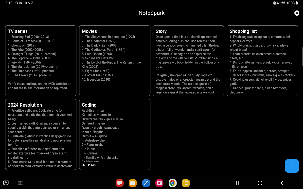Swiftly record your thoughts or save longer notes. Write receipts or documents. NoteSpark simplifies capturing personal thoughts or creating lists, allowing easy sharing with friends and family at any time.